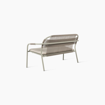 Ervaar de perfecte mix van comfort en stijl met onze Cleo sofa. Deze buitenbank, licht in gewicht maar zeer duurzaam, is ontworpen om gemakkelijk te stapelen, waardoor het een praktische keuze is voor je tuin. Het strakke ontwerp wordt aangevuld door geweven touwdetails, die elegantie toevoegen aan elke tuinsetting.